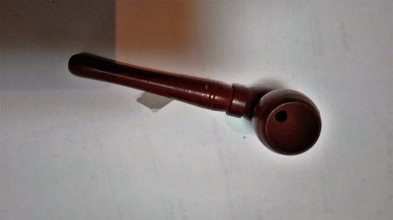 Dies ist eine hölzerne Cannabispfeife aus Rosenholz (Palisanderholz). Die Cannabispfeife ist wunderschön und ordentlich verarbeitet. Das Holz ist eindeutig von besserer Qualität als die meisten anderen Holzpfeifen und es wurde auch mehr Zeit in die Endbearbeitung investiert. Das Holz brennt beim Anzünden von Cannabis oder anderen Kräutern nicht. Die Pfeife ist handgeschnitzt und etwa 10 Zentimeter lang.