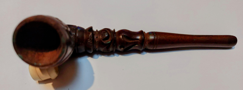 Questa è una pipa per cannabis in legno realizzata in palissandro (legno di palissandro). La pipa per cannabis è bellissima e ben rifinita. Il legno è chiaramente di qualità migliore rispetto alla maggior parte delle altre pipe in legno e anche la finitura è stata dedicata più tempo. Il legno non brucia durante l'accensione della cannabis o di altre erbe. La pipa è intagliata a mano ed è lunga circa 15 centimetri.