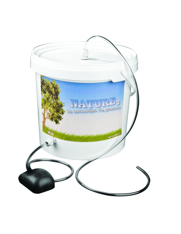Nature 2, naturalny generator CO2 z pompą, zapewnia stopniowe uwalnianie CO2 w Twoim ogrodzie. Podnosi poziom ppm do około 700-750 ppm.