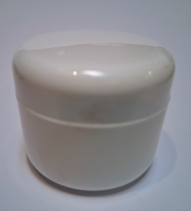 Tom plastkrämburk 25 ml vit med kork